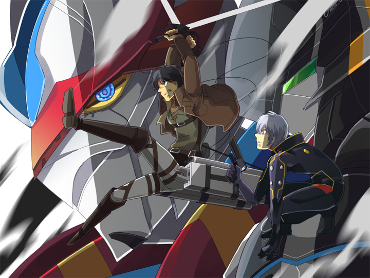 右から、『翠星のガルガンティア』レド(16)&チェインバー、『進撃の巨人』エレン・イェーガー(15)、『銀河機攻隊マジェスティックプリンス』ヒタチ・イズル(16)in レッドファイブ。