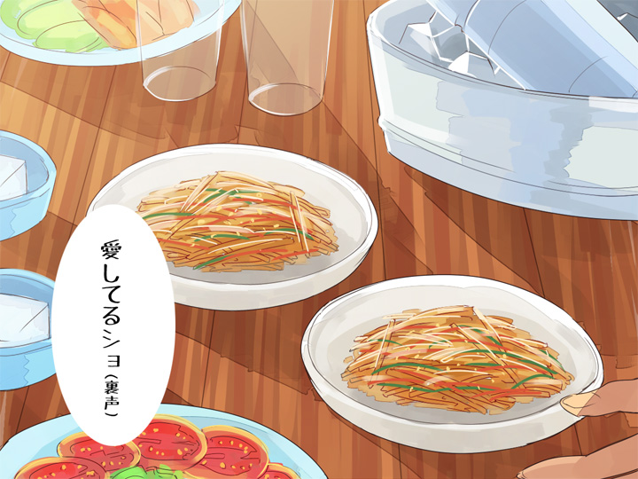金麦のCMはいつもご飯が美味しそうなので、それを東堂さんに作ってもらいたかった。未成年にビールはまずいのでボトルに差し替え。